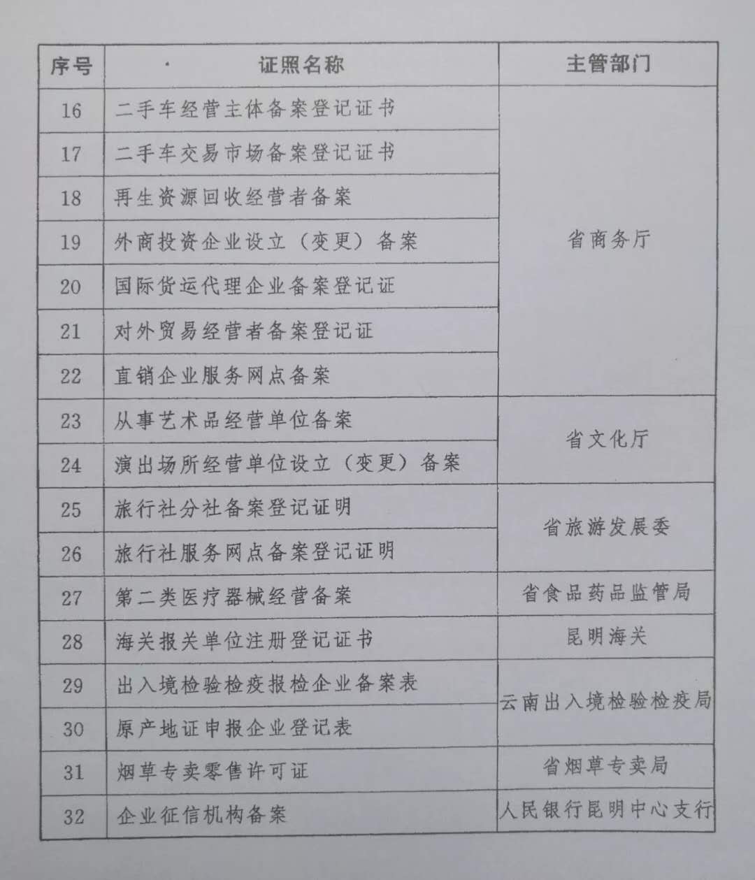 红河州全面实施“多证合一、一证一码”通知