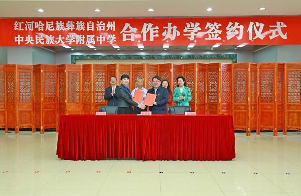 副州长何民,中央民大附中相关领导、州级有关部门负责人和个旧市党政主要领导等出席签约仪式。