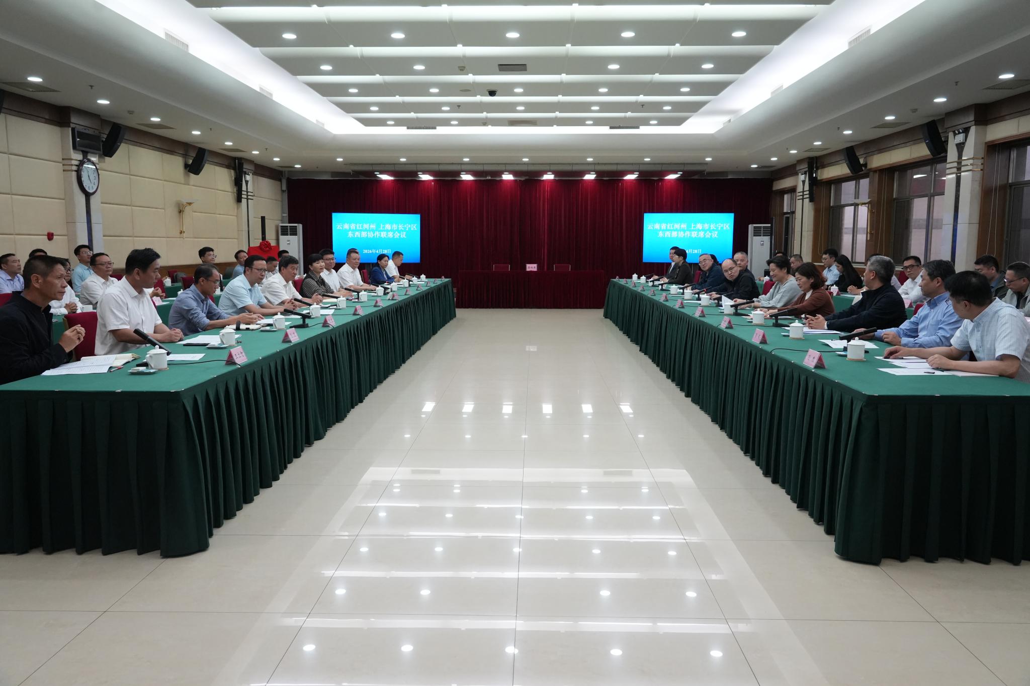 4月27日至29日,上海市长宁区党政代表团到红河州走访对接东西部协作工作。28日,长宁区与红河州在蒙自召开东西部协作党政联席会议。