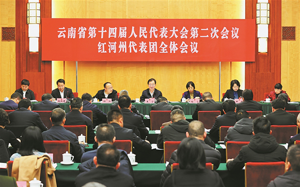 红河州代表团赵瑞君、罗萍、洪家亮等6位代表发言,围绕对外开放、沿边产业园建设、特色农业发展、关心学生健康成长等提出意见建议。王宁认真听取发言,与代表深入交流讨论。他指出,红河州认真贯彻党中央决策部署和省委工作安排,扎实开展主题教育,农民收入持续增加,投资结构不断优化,沿边产业园区建设初见成效,经济社会发展取得新成绩,值得充分肯定。