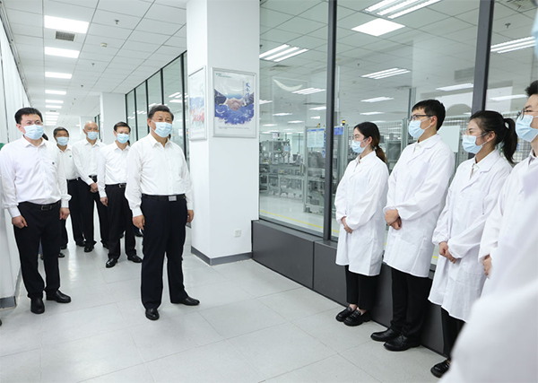 7月5日至7日,中共中央总书记、国家主席、中央军委主席习近平在江苏考察。这是5日下午,习近平在苏州华兴源创科技股份有限公司考察。新华社记者 谢环驰 摄