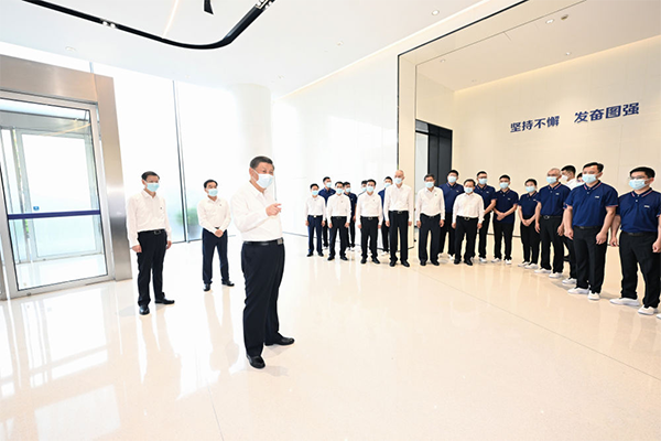7月5日至7日,中共中央总书记、国家主席、中央军委主席习近平在江苏考察。这是6日下午,习近平在南京市考察南瑞集团有限公司。新华社记者 谢环驰 摄