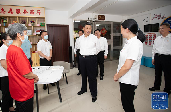 习近平走进志愿服务客厅,向社区工作者、下沉党员干部、志愿者了解基层疫情联防联控机制运行情况,勉励他们把防控一线的篱笆扎结实,为居民营造一个安心祥和的生活环境。习近平在社区边走边看,对社区便民核酸采样等常态化疫情防控措施表示肯定。习近平强调,在应对疫情的斗争中,无论是应急状态防控还是常态化防控,社区都发挥了十分重要的作用。总的来讲,要靠早发现、快处置,靠广大人民群众众志成城,靠社区这个重要基础。要完善社区常态化防控措施,发现疫情后一定要果断,不能迟疑,采取科学严格的管控措施,提高科学防控、精准防控水平,坚决守住社区这道防线。