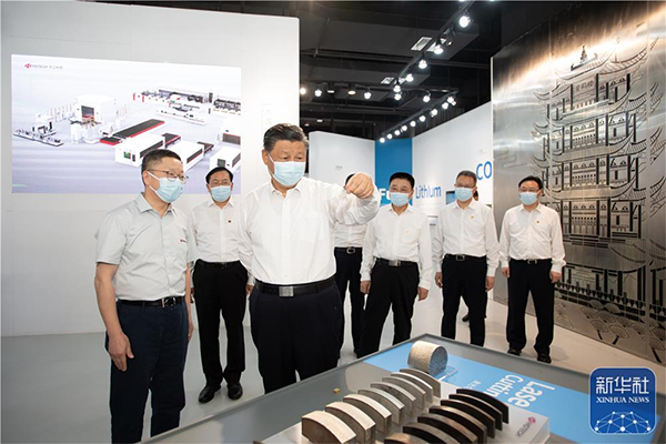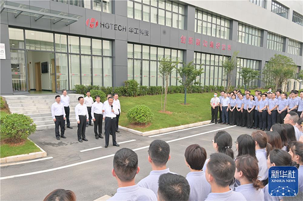 在车间大楼前,习近平同企业职工亲切交流。习近平指出,我国是世界第二大经济体,但还有不少短板,一些产业的基础还不是很牢固,进一步发展必须靠创新。全面建设社会主义现代化国家,实现第二个百年奋斗目标,创新是一个决定性因素。党中央高度重视科技创新,实施科教兴国战略和创新驱动发展战略。如果我们每一座城市、每一个高新技术开发区、每一家科技企业、每一位科研工作者都能围绕国家确定的发展方向扎扎实实推进科技创新,那么我们就一定能够实现既定目标。我们这一代人必须承担起这一光荣使命。科技创新,一靠投入,二靠人才。看到这里聚集了不少精英人才,大家都很年轻,充满活力,我感到很高兴。党中央十分关心科技人才成长,各级党委和政府要尽可能创造有利于科技创新的体制机制和工作生活环境,让科技工作者为祖国和人民作贡献。希望大家继续努力,取得更大成绩。