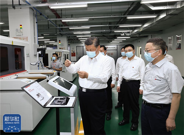 习近平先后走进企业激光科技馆、半导体面板激光智能装备生产车间,察看激光技术产业应用展品。习近平强调,高端制造是经济高质量发展的重要支撑。推动我国制造业转型升级,建设制造强国,必须加强技术研发,提高国产化替代率,把科技的命脉掌握在自己手中,国家才能真正强大起来。