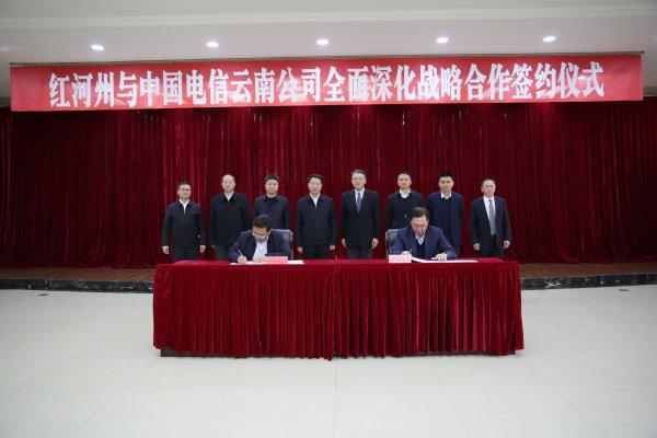 1月11日,红河州与中国电信云南公司在蒙自举行座谈并签署《全面深化战略合作协议》。