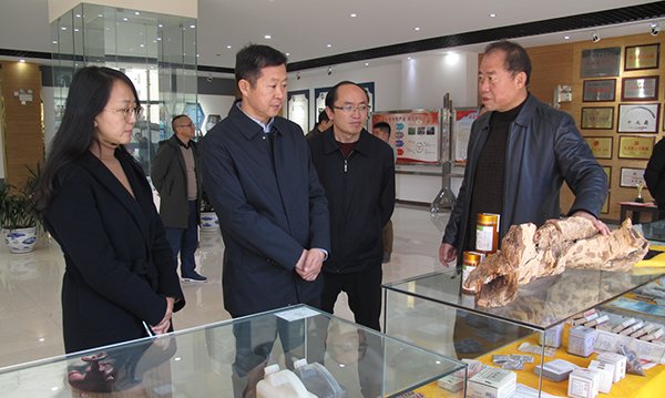 调研中,苏福厚参观了云河药业原料提取车间、制剂车间和公司文化展厅,详细了解了药品生产流程和药品生产情况,听取了云河药业现有生产品种、改制至今的发展现状及未来三年的发展计划,特别是近年来创新成果和研发新产品的情况介绍。