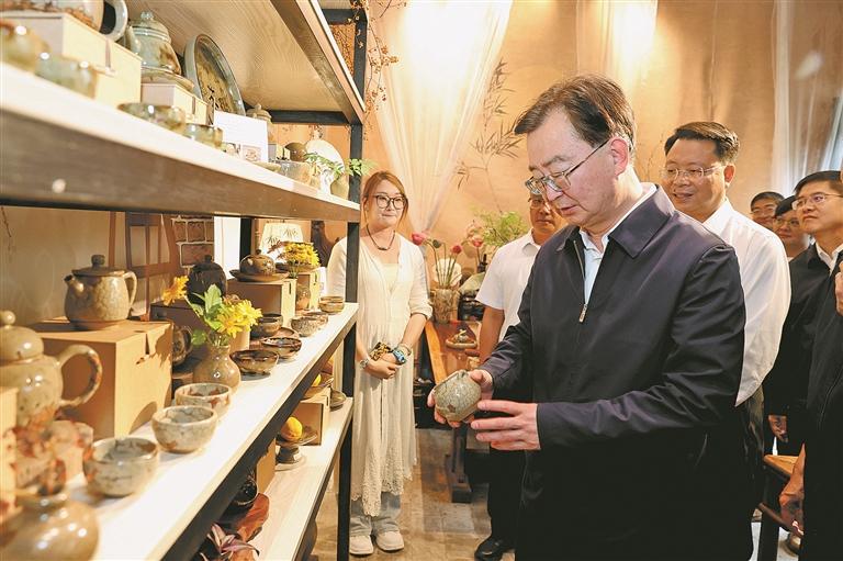 历史文化名城建水,古城、古村与紫陶文化交相辉映。王宁来到建水古城、团山古村调研文旅融合发展,与当地干部、村民、商户深入交流,强调要全面贯彻落实习近平文化思想,切实保护利用好古城古村、传统街区、古建筑、重要文化地标等,创新思路举措,坚持政府引导、社会参与,形成可持续投入、建设、发展的模式。王宁指出,云南不仅自然生态独具魅力,深厚的历史文化也让人心向往之,要把文化保护传承有机融入旅游旅居、乡村振兴,为地方发展赋能、为群众增收添力。到千年临安古城淘一把紫陶壶是很多游客的念想。王宁强调,既要传承传统工艺,又要学习运用现代设计,与时俱进将建水紫陶推向更加广阔的国内外市场,焕发新的活力。