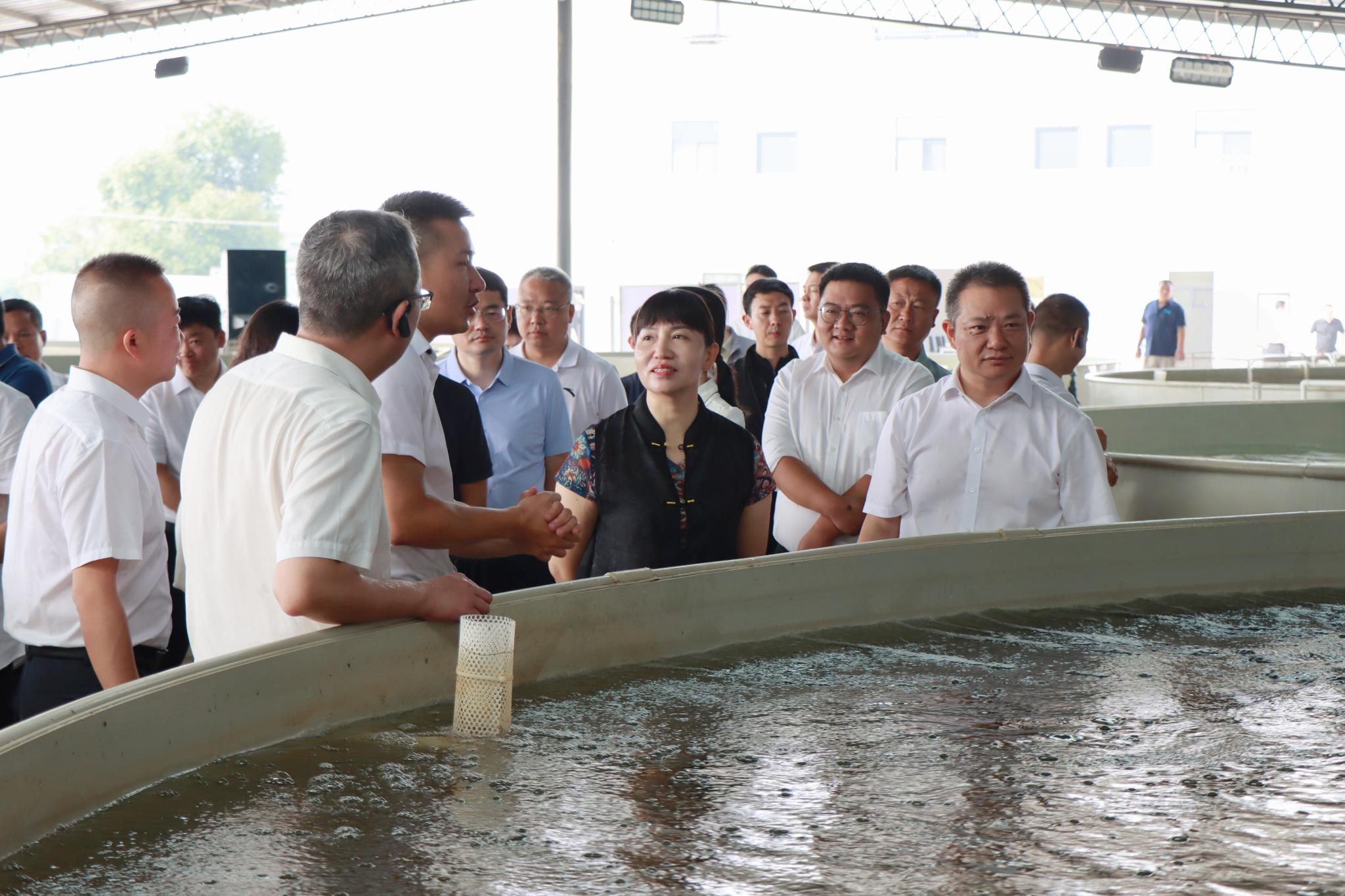 罗萍在个旧市玖源水产养殖有限公司实地调研,了解现代设施渔业发展情况
