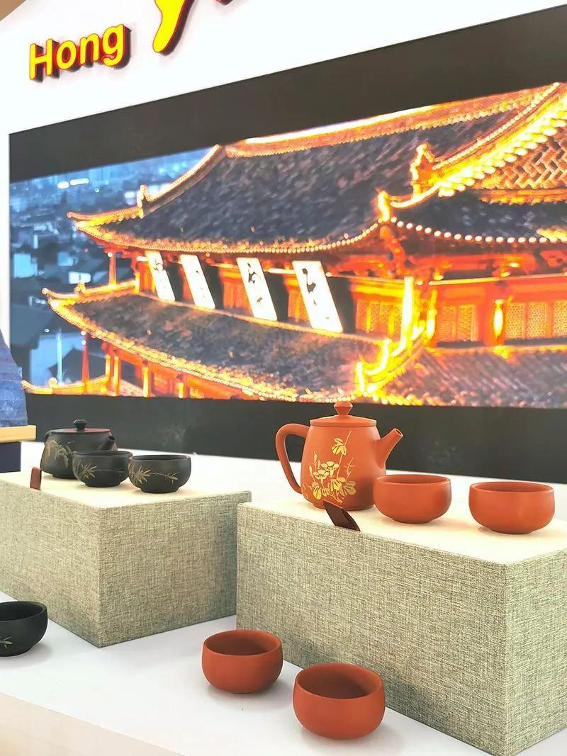 在红河文旅展示区,精美的展馆设计瞬间化身打卡点,十三县市的目的地宣传灯箱吸引众多越南游客前来拍照合影。在产品展台区,石屏豆腐、杨梅干、杨梅汁等特产风物,化身“边交会”新宠,游客纷纷前来品尝;而建水紫陶、东风韵文创、石屏花腰彝刺绣、阿者科文创等,让越南朋友们爱不释手。为更好地给大家一个体验空间,元阳古树茶企业将草编桌凳带到现场,给大家置身于古朴的茶环境中,慢享元阳茶香四溢。
