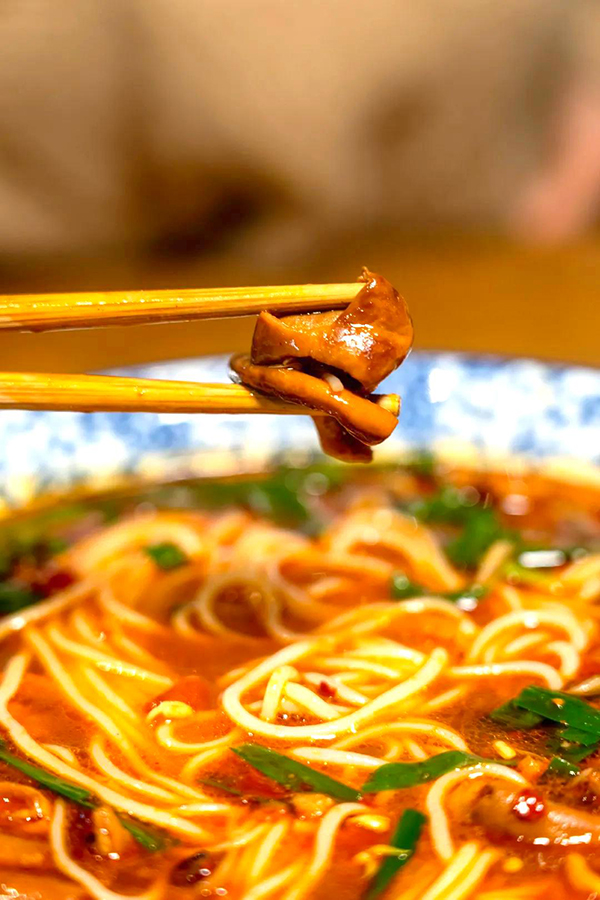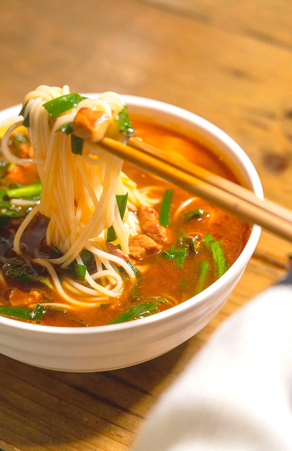 色泽诱人的红烧肥肠米线