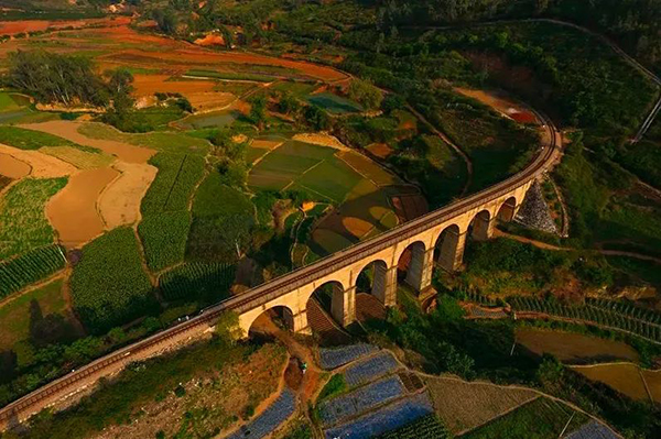 1910年滇越铁路正式通车,米轨火车的汽笛声吹响了云南走向近代社会的号角。就这样,米轨火车在云南穿行百年,留下了许多时光印记。在云南段的460多公里中有248公里行驶在红河州境内,由北向南穿越弥勒、开远、蒙自、屏边,最后由河口出境。随着现代交通的发展,滇越铁路客运功能已被取代,如今仅承担货运的任务。