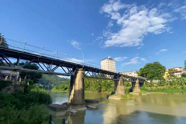 河口中越铁路大桥位于河口南溪河与红河交接处,横跨南溪河连接越南老街市。