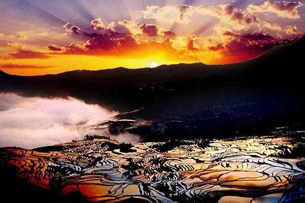 在这里,循着时光的痕迹,穿过恢弘壮观的哈尼梯田,聆听高亢嘹亮的哈尼族多声部民歌,观看一场多姿多彩的乐作舞,品尝一次色香俱全的长街宴。