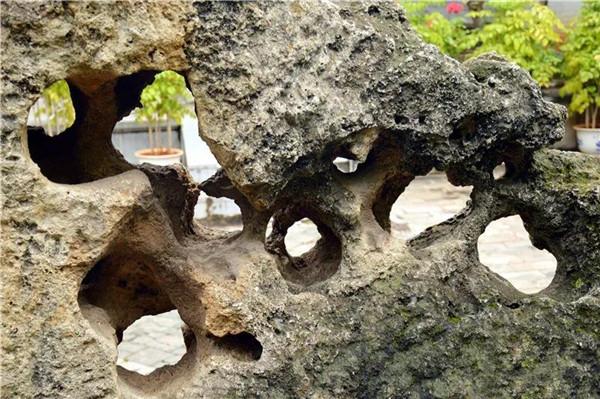 石屏风上有大大小小上百个孔洞,看上去形态奇异。这些孔洞密密麻麻,细看百态千姿,凸凹嶙峋,妙趣横生。