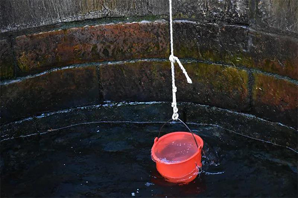 井边挂着水桶,供大家共同使用。不少游客也来体验,拎起水桶,尝试着打水。每天一早一晚,当地人都会来这里取水,这已成为日常生活的一部分。当地人说,从来没见到井水干枯过。