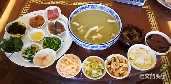 汽锅宴,是用建水特产的紫陶汽锅作炊具,取材猪、鸡、鸭、鱼、鸽、藕、参、芋,配以葱、姜、草 果、胡椒,用熏蒸的方法烹制出来的一桌宴席。在建水“十大名宴”评选中,汽锅宴艺压群芳,脱颖而出,名列榜首,成为十大名宴中的第一宴。