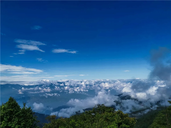 正午时分,山顶空气对流缓慢,在太阳的直射下,云朵也变得慵懒,大朵大朵的云团聚集在山坳里,像缓缓游动的鱼群一样,在青山间驻足,把群山遮得严严实实,像是贪恋这温暖的阳光一样,迟迟不肯挪动脚步。