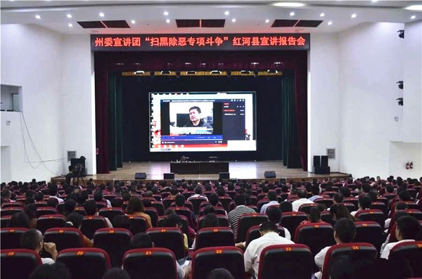 为进一步加大扫黑除恶专项斗争社会宣传力度,不断把扫黑除恶专项斗争引向深入,按照省委宣传部、省委政法委、省扫黑办关于面向群众开展扫黑除恶专项斗争主题宣讲教育活动的通知要求,红河州及时制定了《红河州开展扫黑除恶主题教育宣讲方案》,认真组织开展扫黑除恶主题宣讲活动,再一次掀起扫黑除恶专项斗争宣传的热潮。
