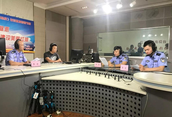 4月23日上午,红河州公安局走进《红河热线》直播间,以“开展扫黑除恶 建设美丽红河”为主题,对“黑恶势力”的定义和自开展扫黑除恶专项行动以来红河州公安机关的主要做法进行了介绍,对侦破的恶势力犯罪团伙典型案例进行了详细剖析,以案说法。
