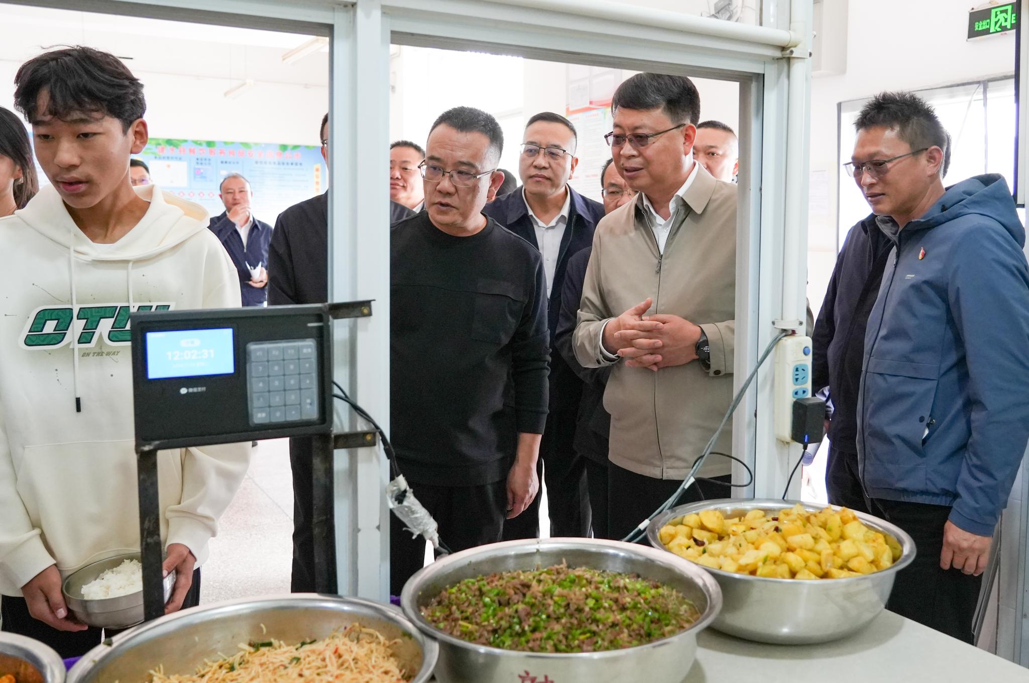 在盘江乡中学,赵瑞君走进学生食堂,仔细查看食材质量、就餐环境,向工作人员详细了解供餐流程和管理情况,强调一定要抓细抓实食品安全工作,严格按要求排查整治当前存在的问题与不足,健全制度机制,强化责任落实,为师生提供营养均衡的餐食,确保师生吃得放心、安心。