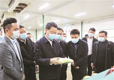 赵瑞君(前排左二)在明康汇生态农业集团泸西种植公司调研蔬菜产业发展情况