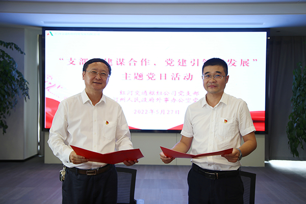 为更好地服务企业,以党建引领优化营商环境,近日,红河州外办党支部与红河交通枢纽公司党支部开展结对共建活动。