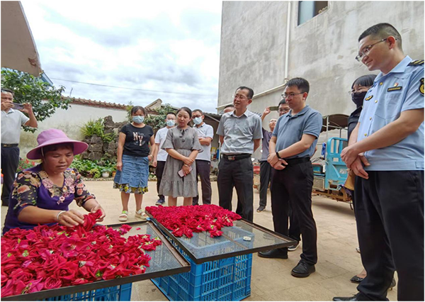 参会人员参观学习了弥勒市小河边小组市场主体培育情况。据悉,弥勒市弥阳街道章保社区小河边小组有农户230户、887人,其中,210户种植鲜食玫瑰花2000亩,有玫瑰加工作坊72户,2021年花农实现玫瑰花销售收入3000余万元。为认真贯彻省、州市场主体倍增计划工作部署,州、市市场监管局践行“一线工作法”,进村入户为农户现场办理营业执照,准予设立登记公司2家,变更公司经营范围1家,办理个体工商营业执照83户。培育农户成为市场主体,为扩大产业创造基础,进一步优化了营商环境,营造了亲商爱商护商良好氛围,激发了市场主体活力。