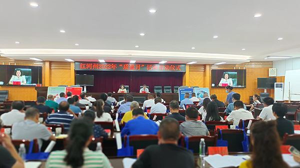 9月6日,红河州2022年“质量月”活动启动仪式在蒙自举行。州实施质量强州和标准化战略领导小组办公室主任、州市场监管局局长向爱武作讲话。