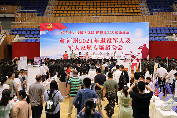 5月30日,红河州退役军人事务局、双拥办、退役军人服务中心联合多家单位举办“学党史力行服务保障 助退役军人就业发展”红河州2021年退役军人及军人家属专场招聘会,切实将“学党史、悟思想,我为群众办实事”落实到服务退役军人就业的具体行动中。