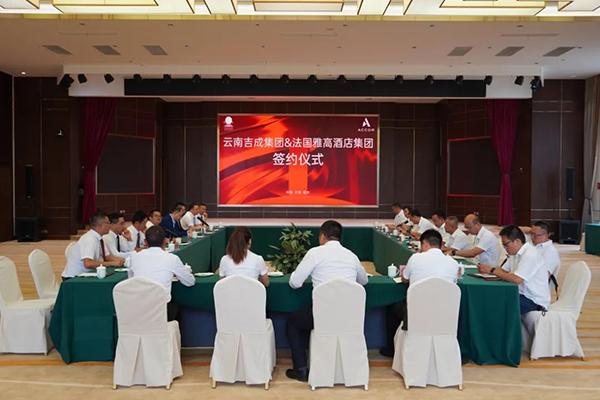 在参会领导和企业负责人的共同见证下,云南吉成控股集团有限公司副总裁陈吉兵与雅高酒店集团大中华区发展与战略合作高级副总裁李理签订了项目合作协议书。