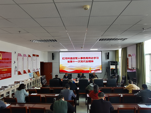 12月2日,红河州退役军人事务局召开干部职工大会,传达学习云南省第十一次党代会报告的主要内容和有关精神。会议由州退役军人事务局党组书记、局长舒安福主持。