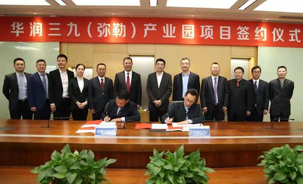 12月10日,弥勒市政府与华润三九医药股份有限公司华润三九弥勒产业园项目签约仪式在深圳举行。市委副书记、市长李健,市委常委、常务副市长马金荣,华润三九医药股份有限公司党委书记、总裁邱华伟等公司领导出席签约仪式。