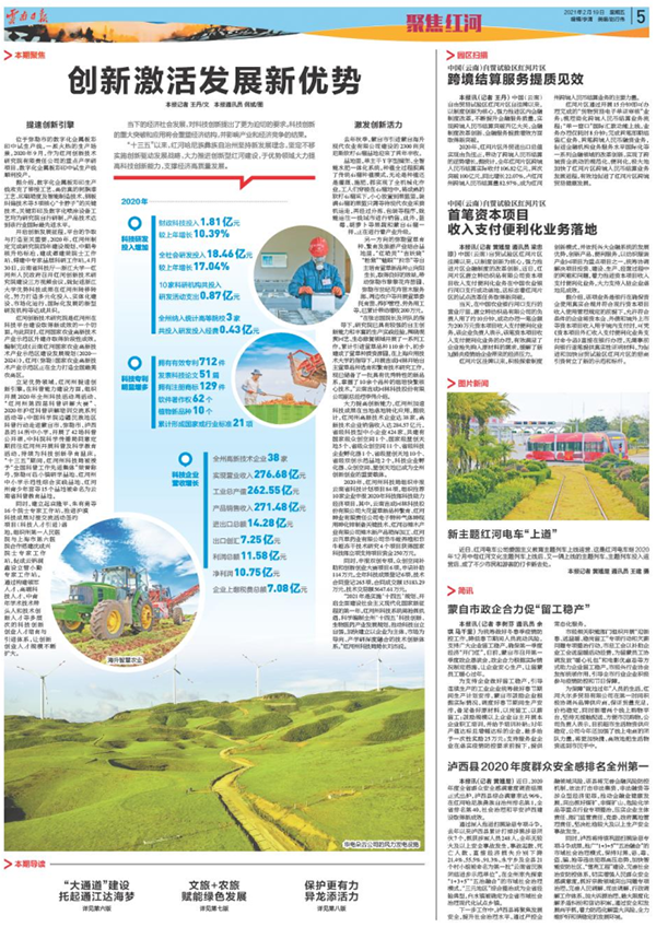 2月19日,《云南日报》以《创新激活发展新优势》为题,对红河州以科技创新支撑经济高质量发展的做法和经验进行报道。