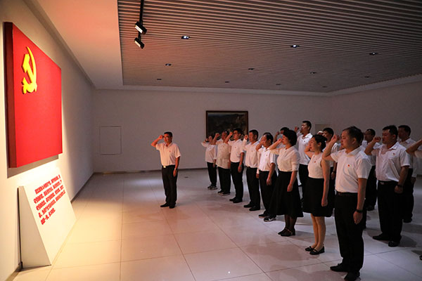 在蒙自烈士纪念馆,全体党员重温入党誓词,怀着赤诚的敬意,面对党旗庄严宣誓。随后,跟随纪念馆讲解员,聆听学习红色故事,追忆革命先辈们的“初心”故事,感受革命先辈们秉持理想信念、保持崇高境界、坚守初心使命、敢于担当作为的精神风貌。