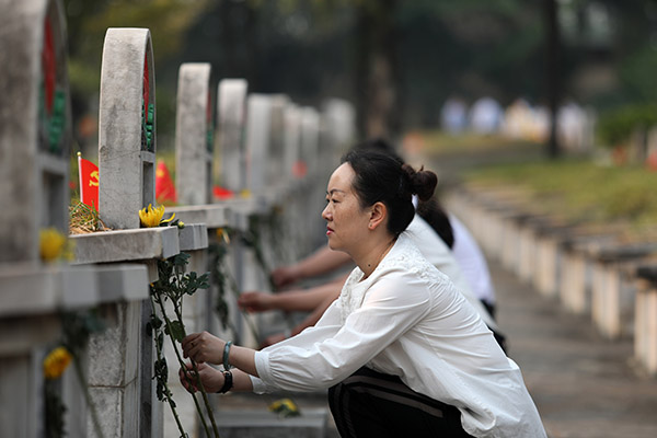 9时许,全体党员干部职工排着整齐的队列,在烈士纪念碑前唱响神圣的国歌,脱帽向烈士默哀3分钟并向烈士三鞠躬,向烈士纪念碑敬献花圈,瞻仰人民英雄纪念碑。之后,组织擦拭烈士墓碑和敬献鲜花活动。