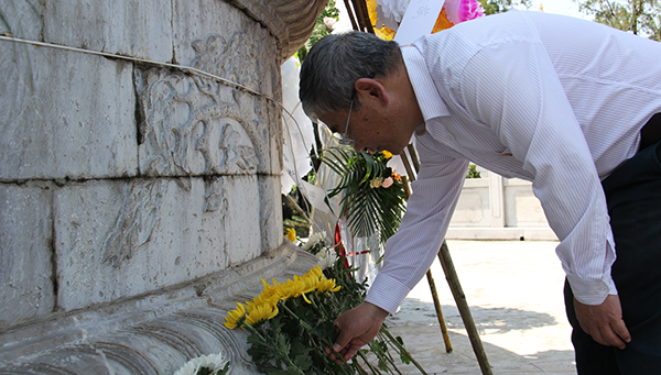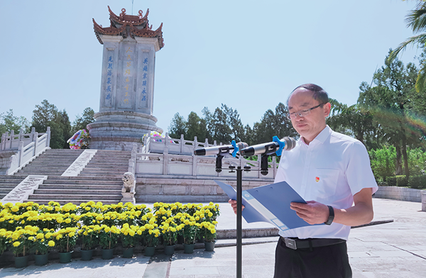 “鲜花献英烈,哀思祭忠魂。”当天上午,红河州科技局的30余名党员、群众代表怀着无比崇敬的心情来到蒙自烈士陵园,烈士纪念塔巍然耸立,烈士陵园内庄严肃穆。伴随着肃穆庄重的音乐,全体人员在烈士纪念塔前整齐列队高唱国歌,鞠躬致敬,静思默哀,敬献花圈和鲜花,深切悼念革命先烈,缅怀他们的丰功伟绩,追思和学习他们崇高的革命精神。