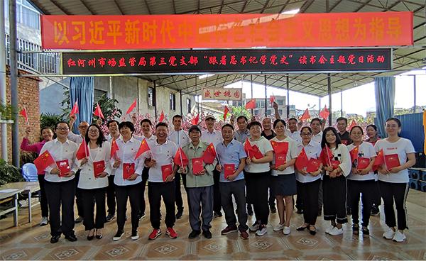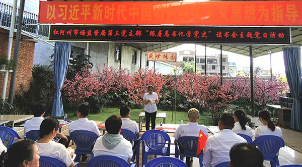 4月20日,红河州市场监管局第三党支部在蒙自市新安所镇新时代文明实践教育培训基地开展了“跟着习近平总书记学党史”读书会主题党日活动。