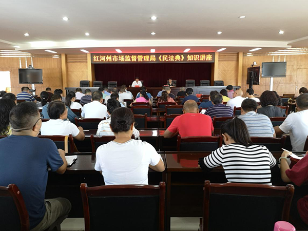 为深入推动《中华人民共和国民法典》学习宣传活动,引导干部职工准确理解《民法典》的精神内涵和条文精髓,7月29日上午,红河州市场监督管理局举办了《中华人民共和国民法典》知识讲座,该局局长向爱武授课。
