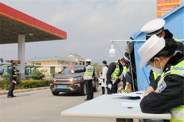 防控疫情刻不容缓,肩扛使命勇于担当。在羊街服务区防控检查点,每天大约有3000辆车从此经过,登记、查证、测量体温,特别是仔细排查外籍车辆,每个环节都不容差池,工作量巨大。州公安局交警支队的民警们不仅要完成防控疫情的任务,还要完成交通事故处理、交通疏导等日常工作。连日的高负荷运转让大家的脸上都有倦容,但执行任务时仍旧脚下生风。当记者问觉不觉得累,觉不觉得条件艰苦时,得到了民警们出奇一致的回答:“习惯了,这不就是我的职责嘛。”52岁的鸡石通建大队老民警徐卫斌去年12月刚刚做了心脏支架手术,12月底刚出院他就奔赴岗位,面对疫情,他毫不犹豫地冲往一线,“我自己的身体我自己知道,而且岗位职责在那里,不去做的话总感觉心里空落落的。”