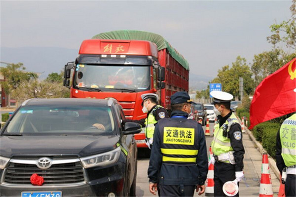 记者从红河州公安局交通警察支队鸡石通建高速公路交巡警大队了解到,自1月26日开始,州公安局交警支队联合卫健、路政等部门在我州各高速交通要道的服务区、收费站设置了防控监测点,实行“四班三轮转”工作制度,24小时不间断地排查过往车辆。“以前只有临时搭建的帐篷,晚上气温低,风大,我们都是多穿两件大衣御寒。”鸡石通建大队事故一中队中队长覃勤刚刚结束在羊街服务区8小时的执勤任务,他笑着对记者说:“当然比帐篷好多了,但无论执勤点是什么样的条件,我们都要坚决完成任务。”