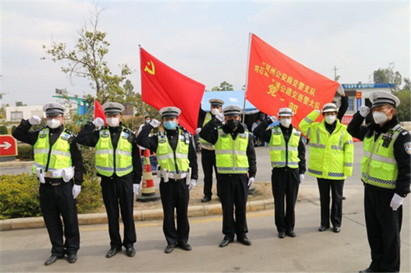 铁肩担使命,坚守岗位现本色。疫情在前,在我州各重要路段的防控检查点,忙碌的“小黄人”身影俨然成为了我州抗击新型冠状病毒感染的肺炎疫情的坚实屏障。“您从哪里来?要到哪里去?给您测下体温。”成为了体现守土有责、守土担责、守土尽责的温暖对话。鸡石通建大队民警金伟刚结束0点到8点的执勤任务,从执勤点回到大队,而此刻他的儿子还在大队指挥中心紧张工作,他的妻子还在建水县疾控中心投身一线,彻夜未眠的他眼睛发红,他打趣地对记者说:“防控措施处处落实,各行各业严防死守,愿我们最后是‘白忙一场’。”