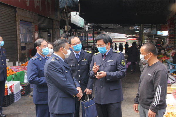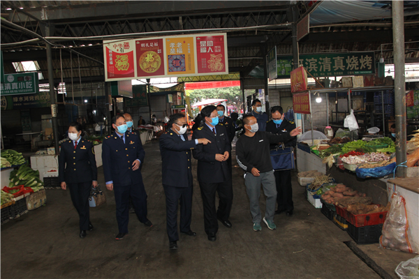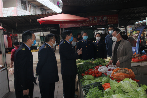 检查组对开远市市场物资供应充足、物价稳定、疫情期间市场监管工作到位给予充分肯定,杨国椿同志对开远市市场监管工作重点强调了几点:一是充分发挥党组织在疫情防控工作中的带头作用和党员的先锋模范作用。二是抓好疫情期间宣传教育工作,统一思想,提高认识。三是认真履行市场监管职能职责,确保疫情期间严禁任何形式的野生动物交易活动和关闭活禽交易市场,密切关注医疗器械、药品以及猪肉、粮油、禽蛋、菜、奶、盐等生活必需品市场价格动态,严厉查处不按规定明码标价、价格欺诈、哄抬价格等行为。四是及时处理价格举报投诉,切实维护群众合法权益。