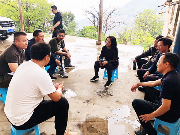 在大山村委会新寨村,向爱武逐一走访了挂包的每一户“贫困亲戚”,进一步核实了解他们的生产生活情况,分析致贫原因,宣讲扶贫政策,落实帮扶措施,并指导贫困户做好村内户外和家庭环境卫生整治工作;与村干部、驻村队员、战斗小分队、贫困群众代表沟通交流,深入了解脱贫攻坚一线政策落实、人居环境提升、基础设施建设等工作,听取大家对如何开展好脱贫攻坚工作的思路和建议,一起分析研究并提出有针对性的改进措施和办法。