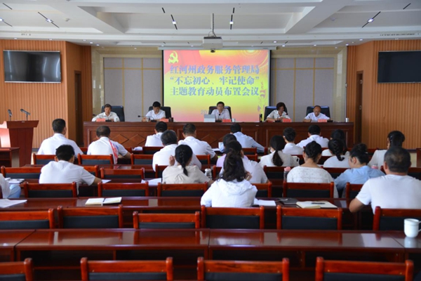 红河州人民政府副州长鞠云昆出席会议并讲话,州委“不忘初心、牢记使命”主题教育第十四巡回指导组组长后丽菠到会指导,州政务服务管理局党组书记、局长可文炳作动员讲话。
