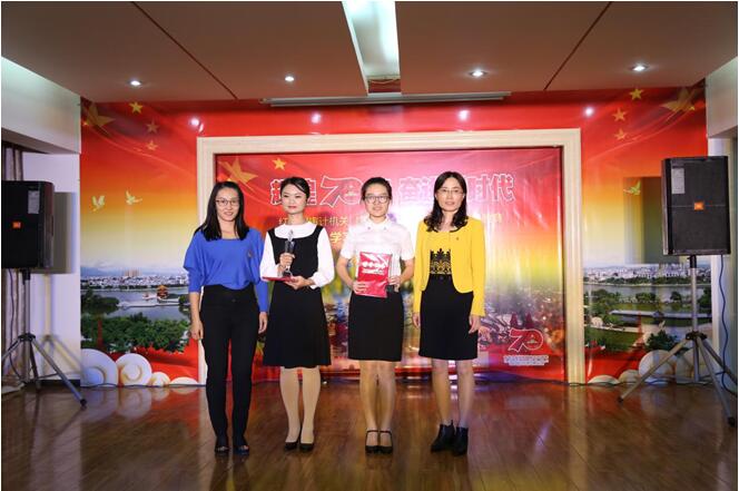 李朝晖(右一)和省审计厅办公室李玥帆(左一)为一等奖获得者颁奖 9月28日,红河州14个审计机关欢聚蒙自开展“不忘初心、牢记使命”主题教育演讲比赛,同庆新中国70华诞唱响审计人之歌。