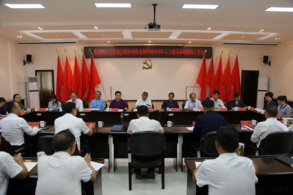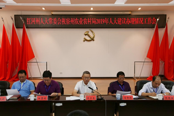 10月9日,州人大常委会副主任汤卫东率部分州人大常委会委员、州人大代表以及州人民政府办公室相关领导一行16人组成视察组,到红河州农业农村局视察2019年州十二届人大二次会议建议办理工作,并召开视察工作会。