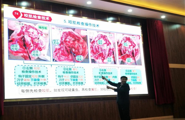 此次培训班还邀请了原农业部组织编写的《生猪屠宰检疫检验图解手册》的主编、全国畜禽屠宰检疫检验知名专家、山东商业职业技术学院孙连富教授作生猪屠宰检疫检验技术的专题讲座,孙连富教授从宰前检验检疫(入场监督查验)、宰后检验检疫(同步检疫)和生猪屠宰检验检疫(宰前宰后)要点等方面进行了详细讲解。