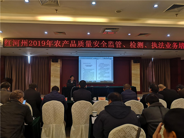 12月12日至14日,红河州农业农村局在蒙自市举办农产品质量安全监管、检测、执法业务培训班。各县市农业农村局农产品质量安全分管领导,农产品监管科、农产品质量安全检测站、执法大队负责人和州农业农村局机关相关科室、局属单位负责人,共计70人参加了培训。