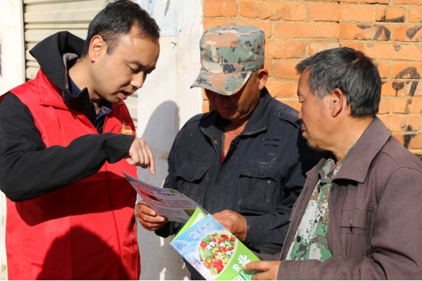 州农业农村局副局长马立岗1月21日上午在蒙自市文澜街道办事处多发勒村委会向当地百姓宣传农业安全生产知识